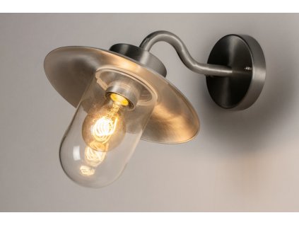 Retro nástěnné venkovní svítidlo v hliníkovém provedení se skleněným krytem žárovky