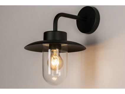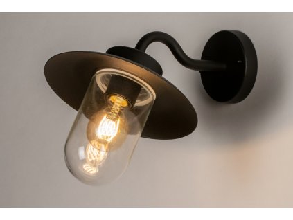 Retro nástěnné venkovní svítidlo v černém provedení se skleněným krytem žárovky