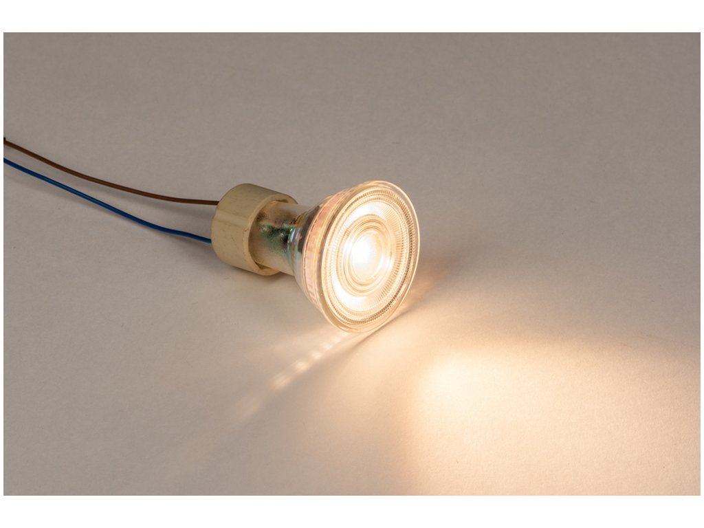 Tato moderní LED žárovka se snadno vyměňuje, je stmívatelná (stmívač není součástí balení) a při ztlumení mění i svou barevnou teplotu. Spotřebuje pouze 4,5 wattů a je kompatibilní se stmívači typu trailing edge (fázový posuv). Úhel svícení činí 38 stupňů.