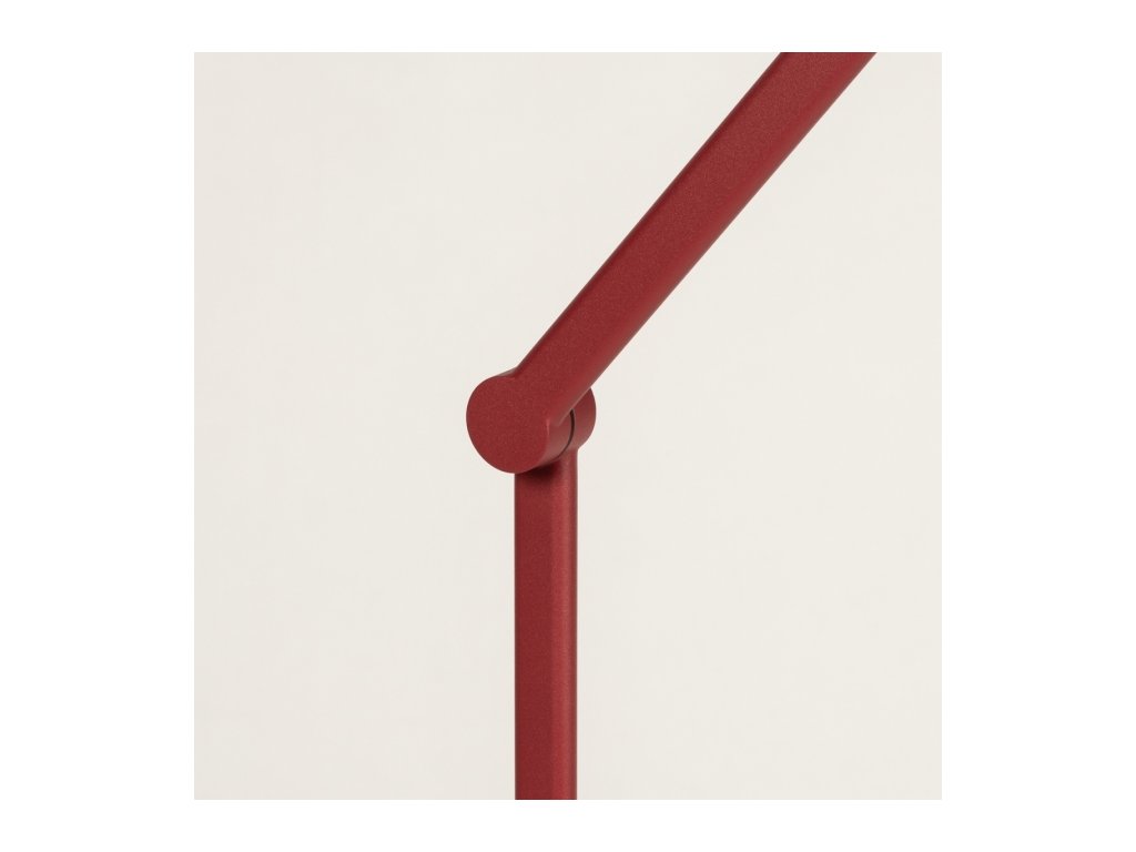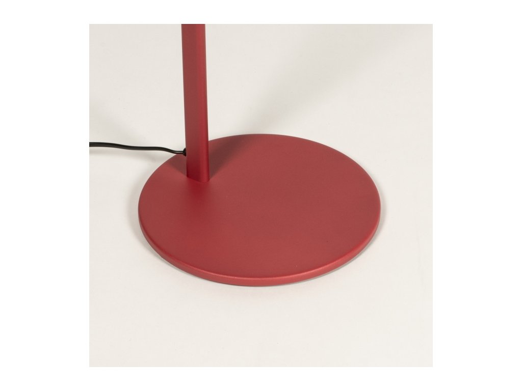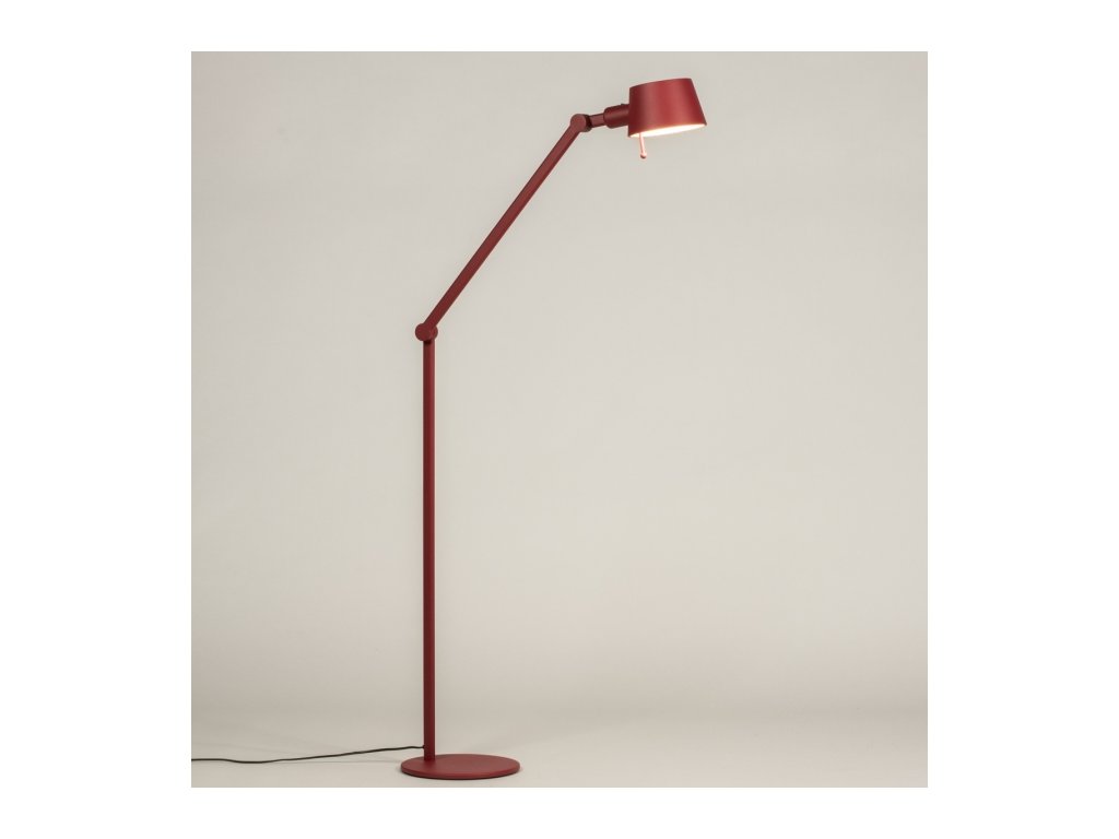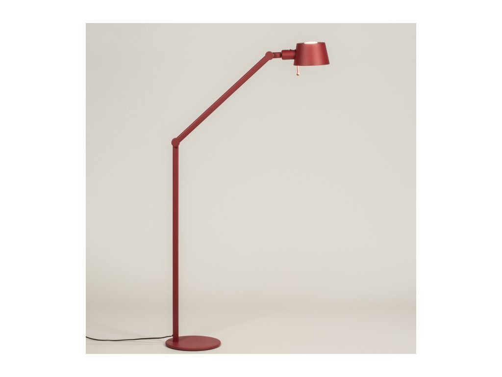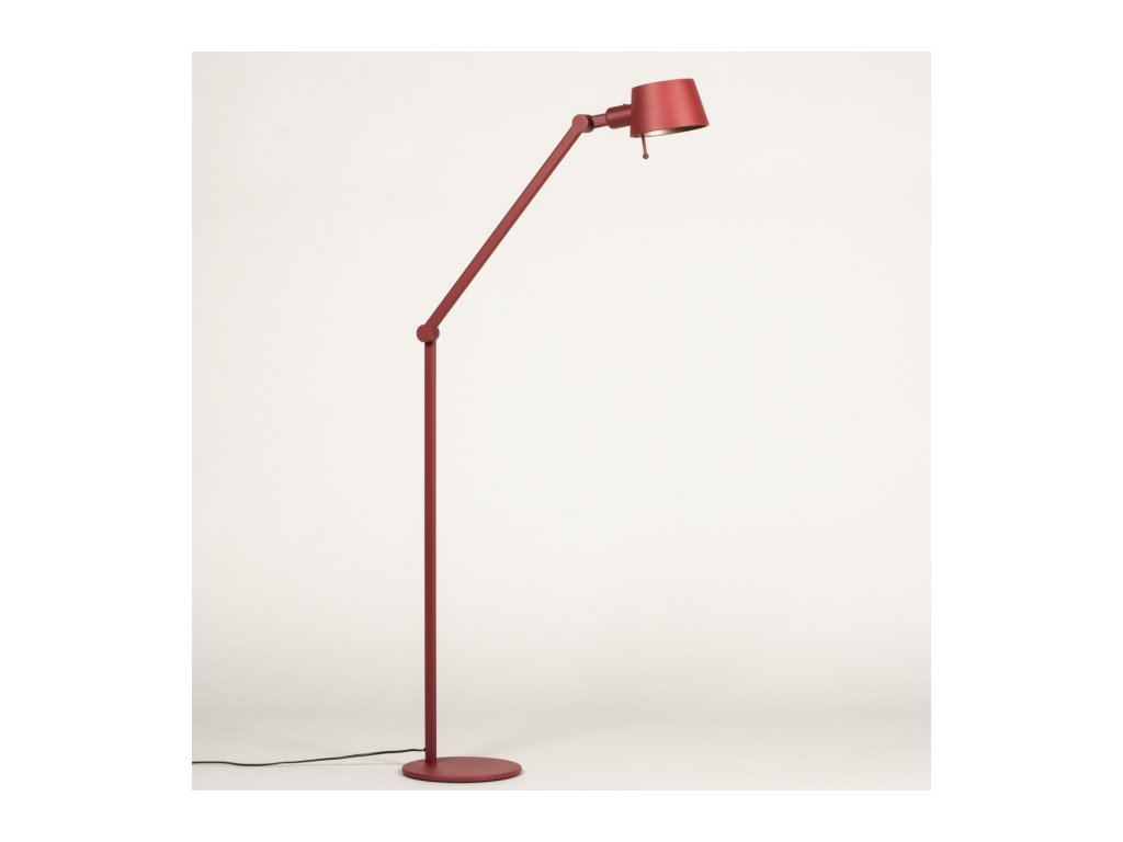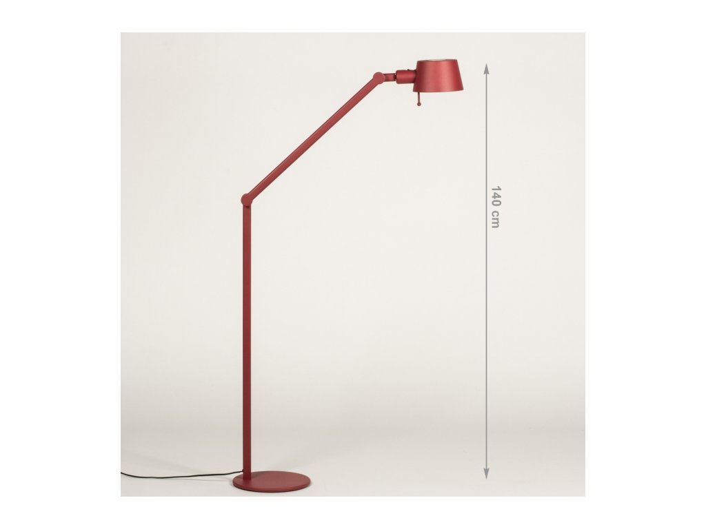 Praktická stojací lampa na čtení, která zároveň skvěle vypadá. Je stabilní, robustní, nastavitelná a má krásnou matně červenou barvu. Směr světla lze snadno upravit, jednoduše natočíte stínidlo pomocí decentního kovového kolíku. Vnitřní strana stínidla má jemný zlatavý odstín, který světlu dodává teplý a luxusní nádech. Světlo svítí také směrem vzhůru skrz horní otvor stínidla. Ten je zakrytý matným plexisklem, které rovnoměrně rozptyluje světlo.