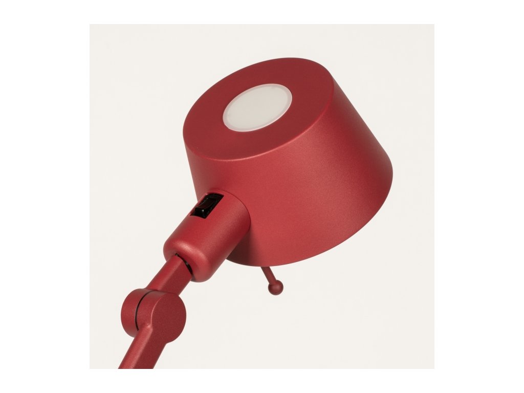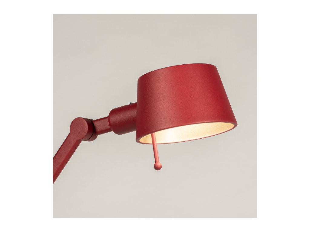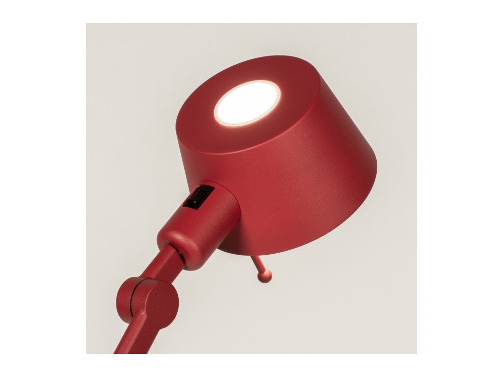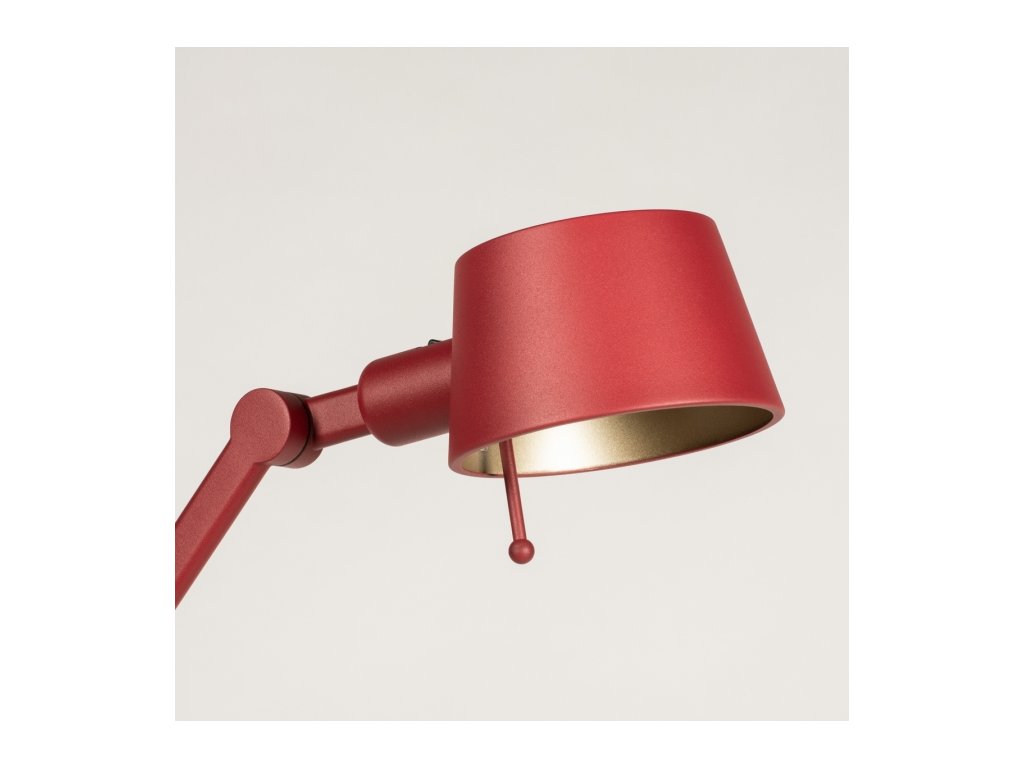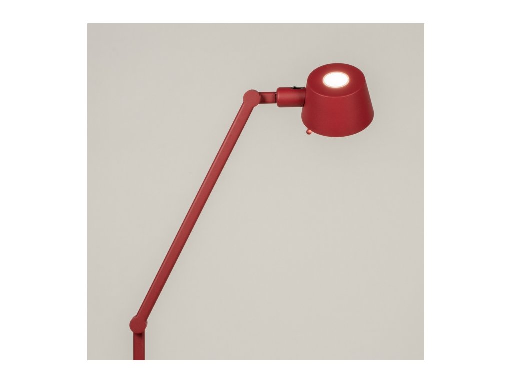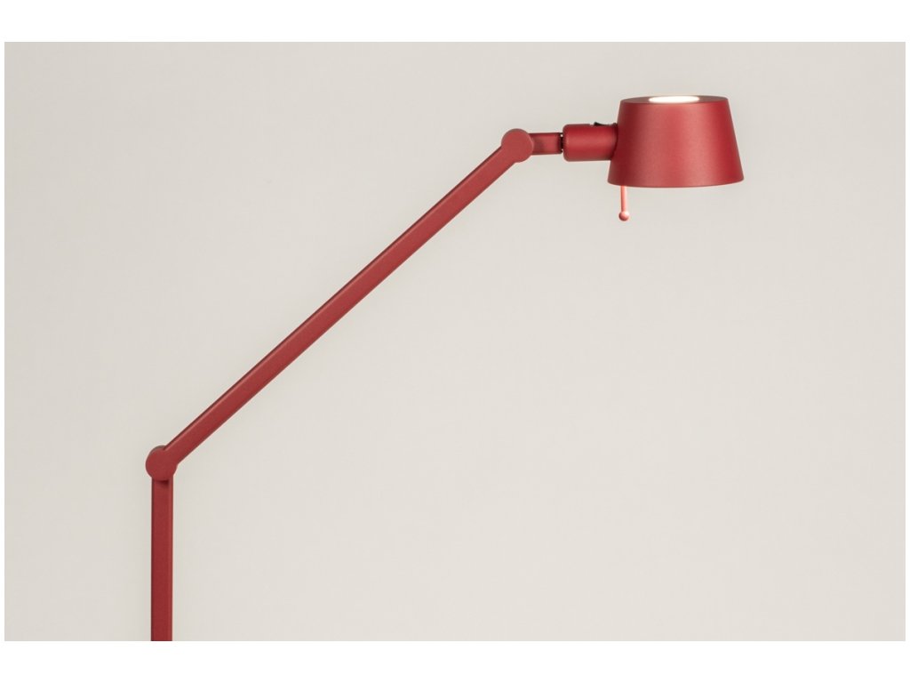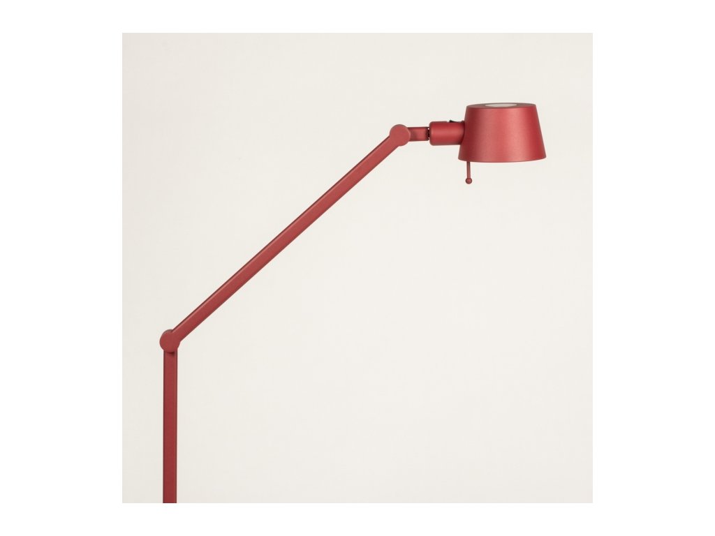 Praktická stojací lampa na čtení, která zároveň skvěle vypadá. Je stabilní, robustní, nastavitelná a má krásnou matně červenou barvu. Směr světla lze snadno upravit, jednoduše natočíte stínidlo pomocí decentního kovového kolíku. Vnitřní strana stínidla má jemný zlatavý odstín, který světlu dodává teplý a luxusní nádech. Světlo svítí také směrem vzhůru skrz horní otvor stínidla. Ten je zakrytý matným plexisklem, které rovnoměrně rozptyluje světlo.